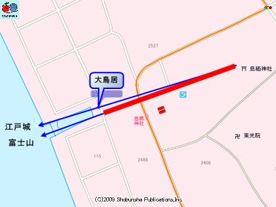 伊豆山神社の境内には、雷電神社という摂社が祀られています。 これは、方位角220°で、背後に熱海の来宮神社を背負う格好で配 置されています。来宮神社についての詳細は後述しますが、来宮はしばしば木宮とも記されるように、樹木信仰をベースに持っています。熱海の来宮神社は樹齢1000年を越えるといわれる大楠がご神体とされ、神社の由緒には「元々は自然信仰の聖地だった」と明記さ れています。