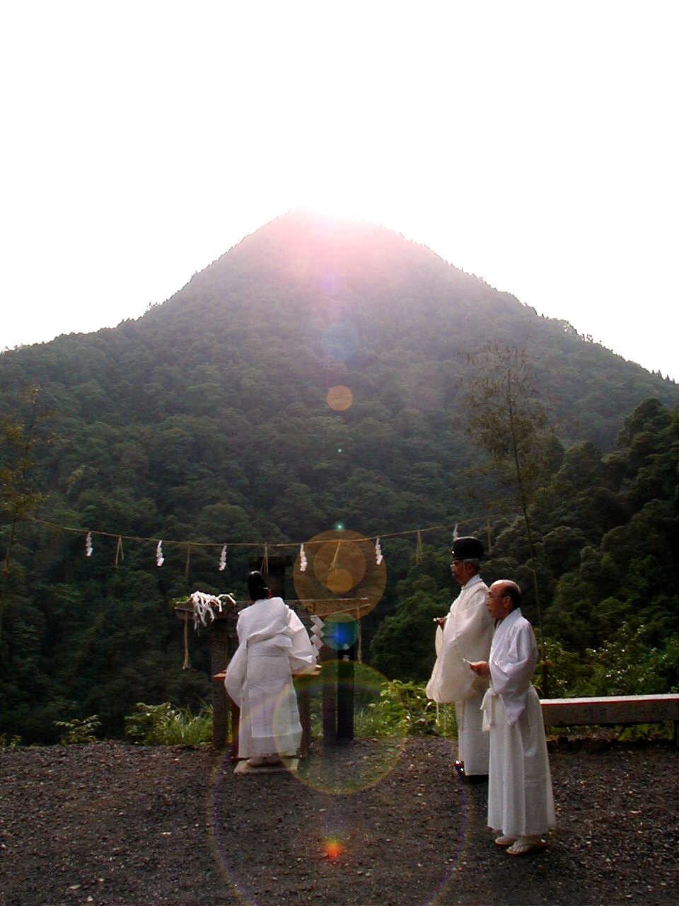 里宮に当たる御所神社は方位角56°方向で、この地方の夏至の太陽が上る方向60°に近い。地形を考えると、ほぼぴったり、 里宮方向から奥宮へ向かって夏至の太陽の朝日が差し込んできたのではないだろうか。